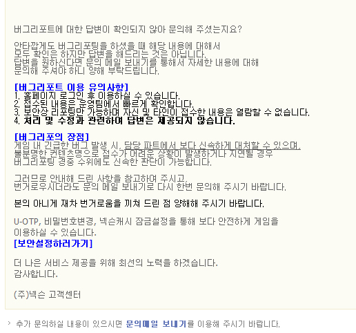 그리고 어이없는 넥슨의 답변............................................