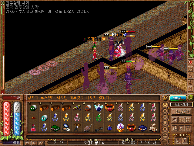 그리고 콩... 아니 지하수로 몬스터를 패고 밀레스마을에서 좀 쉬려는데 뿔탱크님이 본캐격수인 빵탱크로 접속하셔서 쩔을 시켜주겠다고 했습니다! 그 덕분에 직법까지 가는데 성공했죠!