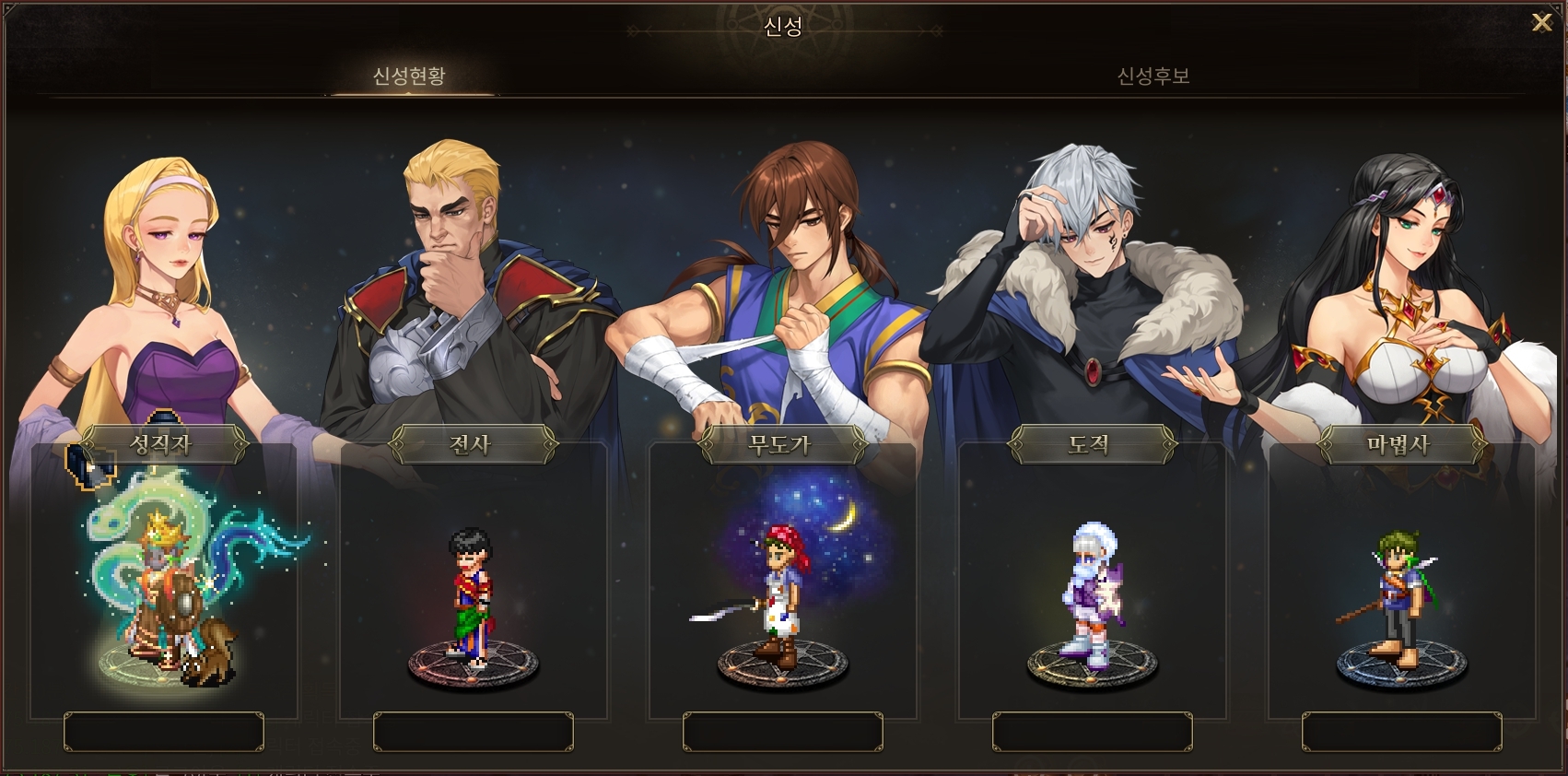 신성 콘텐츠는 직업의 신인 이아, 세토아, 메투스, 셔스, 로오가 자신의 직업을 선택한 모험가들의 성장을 지켜보고, 독보적인 성장을 보이는 모험가에게 가호(혜택)를 내려주는 콘텐츠입니다.
